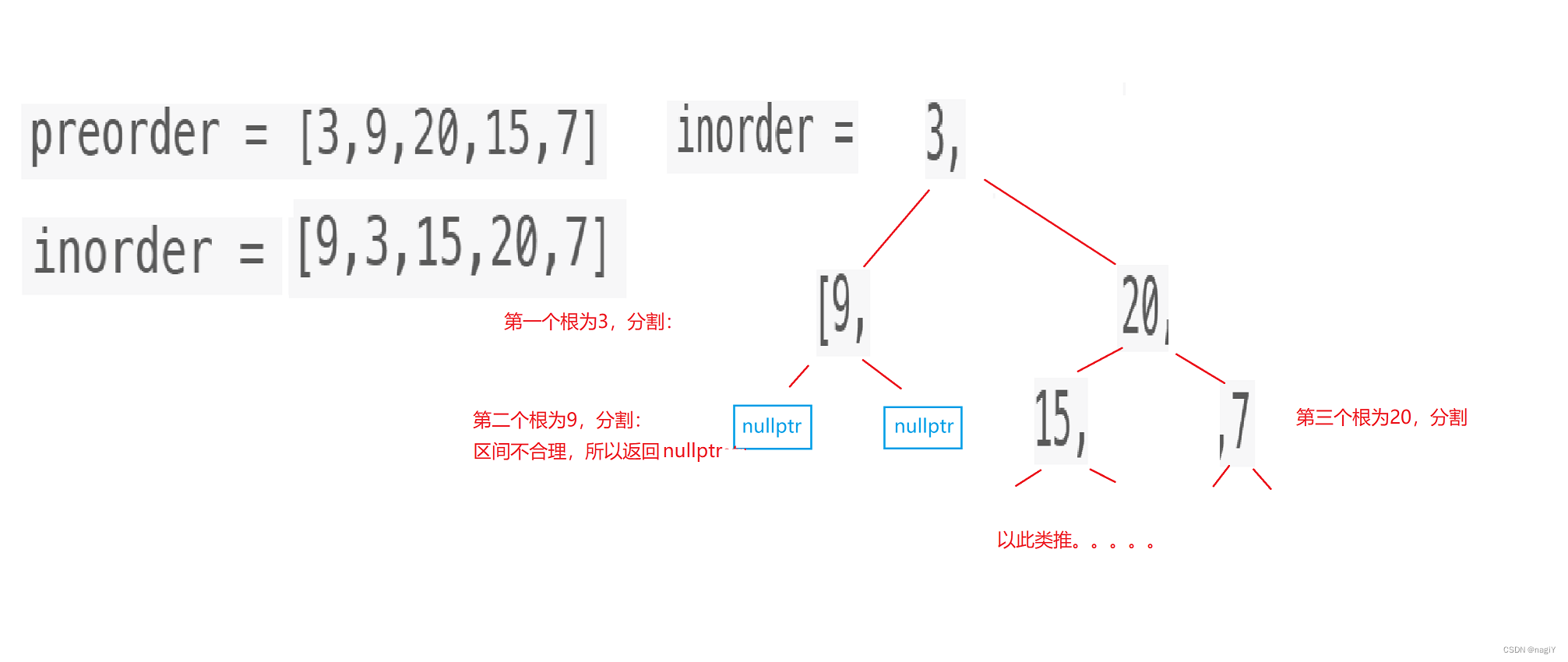 确定好根后,根据中序序列就可以分割左子树和右子树的区间,然后构建树;