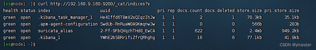 测试是否能够正常运行,查看es集群信息(健康状态、分片、索引等)