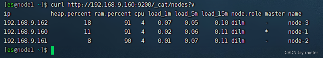 curl http://192.168.9.160:9200/_cat/nodes?v