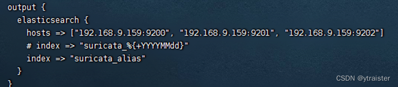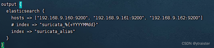 修改logstash中的logstash.conf文件vim /usr/local/logstash/config/logstash.conf(只需修改output中es的hosts值即可)