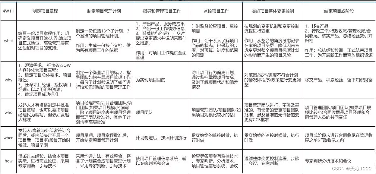 1、产出产品、服务或成果 2、产出一份工作绩效信息 3、随着执行的运行,及时提出变更请求并说明采取什么措施。作用;对项目工作提供全面管理 |