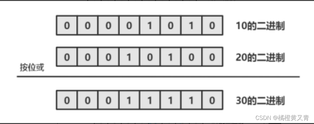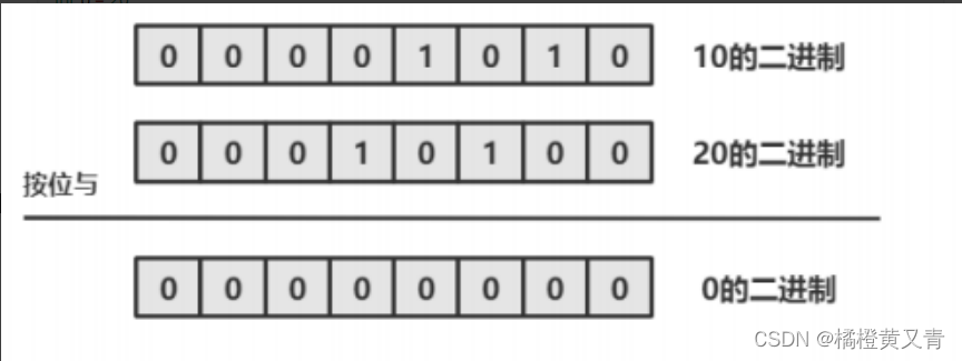 进行按位运算, 需要先把 10 和 20 转成二进制, 分别为 1010 和 10100