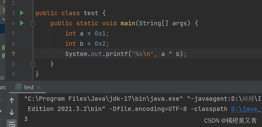 System.out.printf("%x\n", a ^ b);
