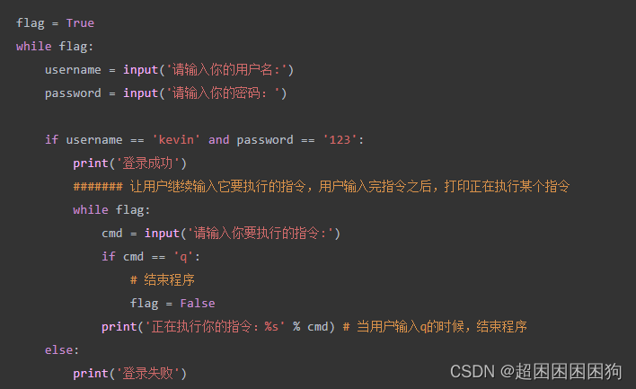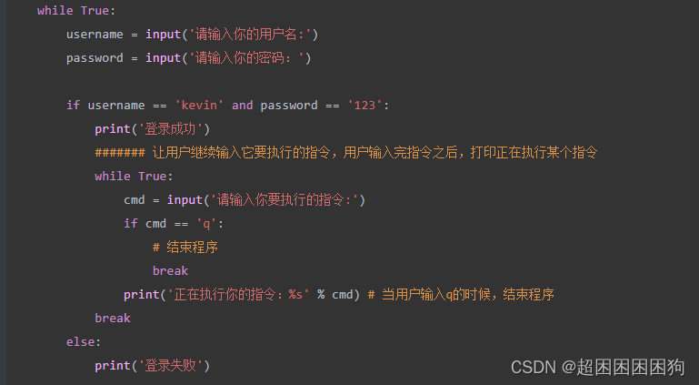 问题是用户输入正确的用户名密码以后无法结束循环,那如何结束掉一个循环呢?这就需要用到break了!