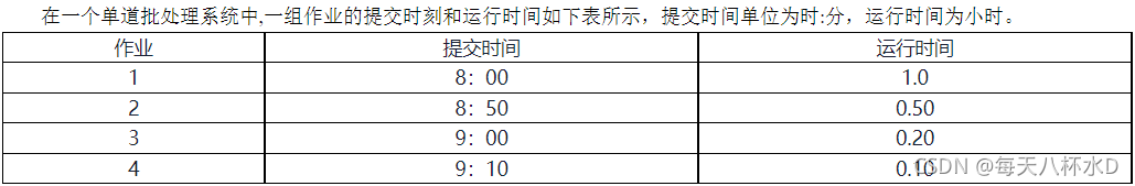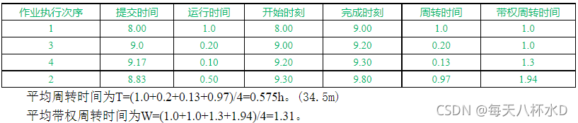 如下面图中:作业1完成时间是9:00,要在9点之前提交的进程中选择一个最短作业的进程,这里容易忽略掉作业4是9:10到达且作业时间最短,不要把作业4拿来比较,因为9点时刻,作业4还未提交还未到达。