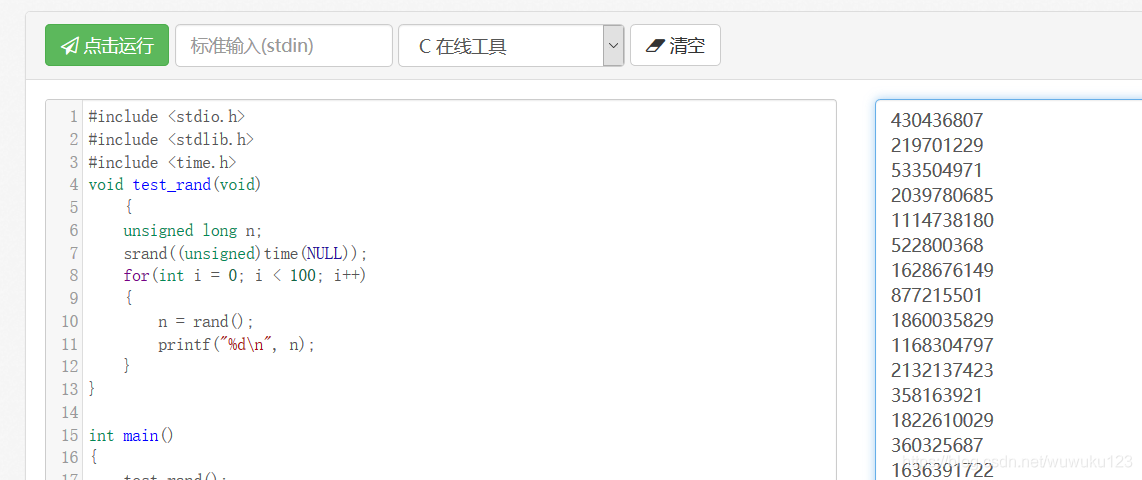 所需要的头文件:#include <stdlib.h>#include <time.h>一、int rand(void) 函数C 库函数 int rand(void) 返回一个范围在 0 到 RAND_MAX 之间的伪随机数。RAND_MAX 是一个常量,它的默认值在不同的实现中会有所不同,但是值至少是 32767。\示例代码:#i...