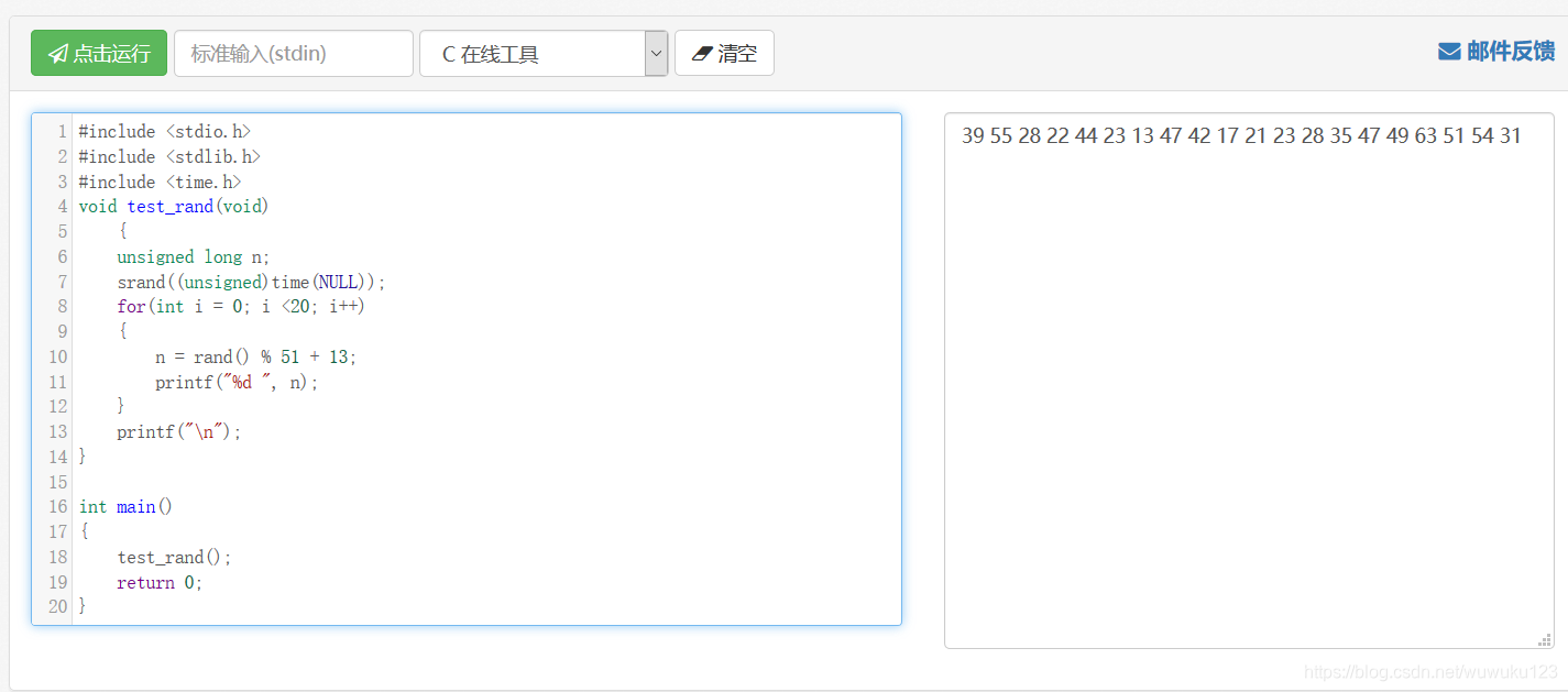 分析:取模即取余,rand()%51+13我们可以看成两部分:rand()%51是产生 0~50 的随机数,后面+13保证 a 最小只能是 13,最大就是 50+13=63。