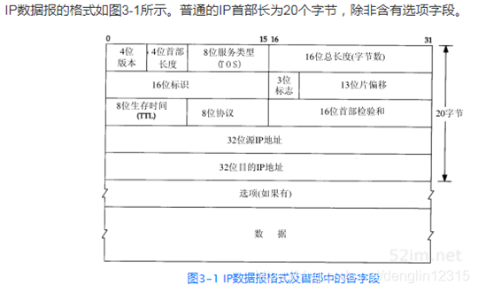 总结:三种IP子协议拥有相同的IP头格式,如下(对照二.1的图来看):