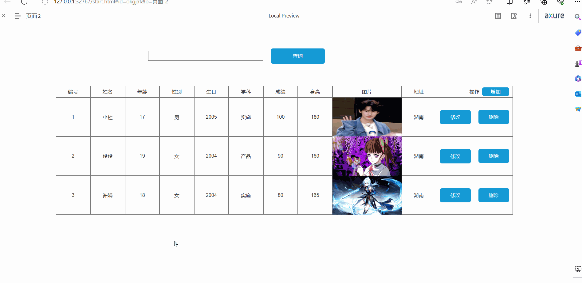 - 在按钮交互里添加中继器事件即可实现对表格的操作。