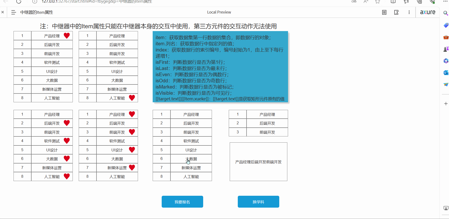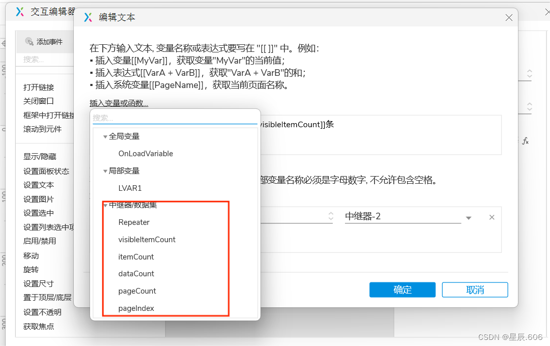 在我们设置文本时可以调用中继器的属性作为文本替代,适用于分页页数等等。