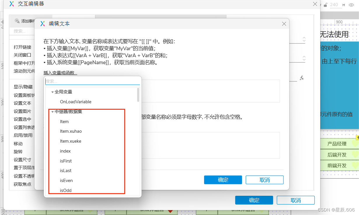 这时我们可以给中继器设置新的列(取名),并且为这个列填值。然后可以在交互事件里改变中继器所绑定的文本。
