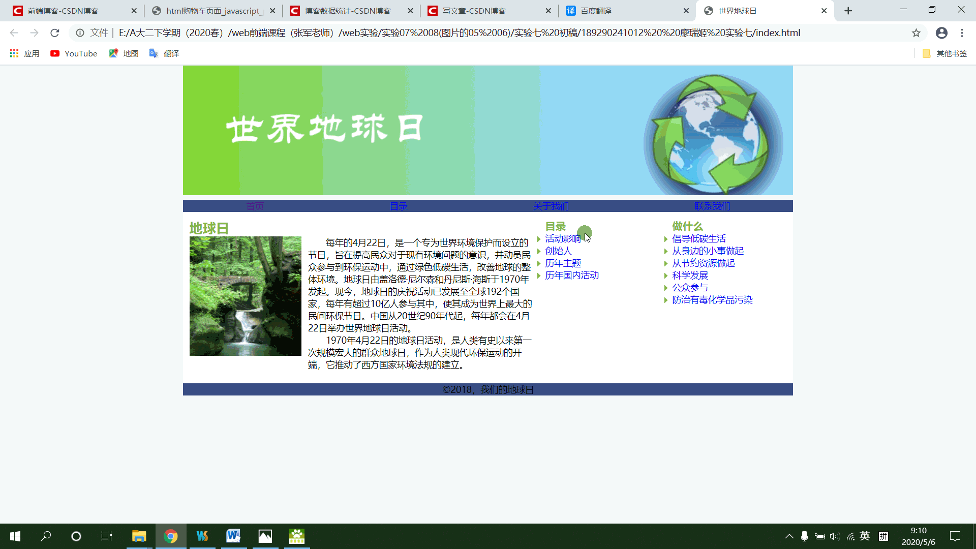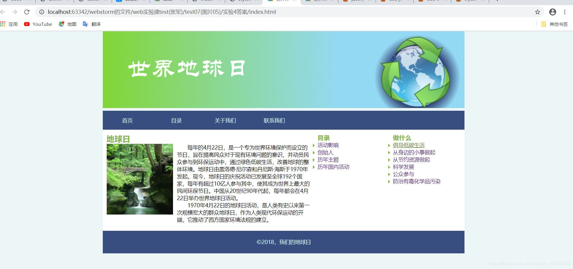 通过html+css常用元素外观样式设计(伪类)、css3弹性伸缩盒制作的“世界地球日” 网页