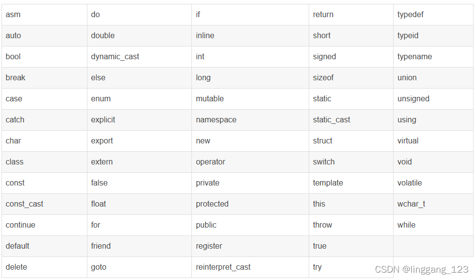 3、不能是c++关键字,例如不能用 class 、 int 这些单词来命名一个变量。