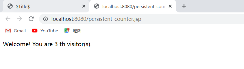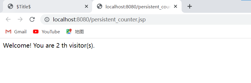 多次刷新页面,Welcome!You are visitor number后面的数字逐次加1