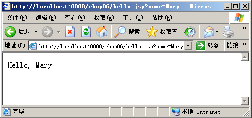 图6.4 hello.jsp页面的运行结果