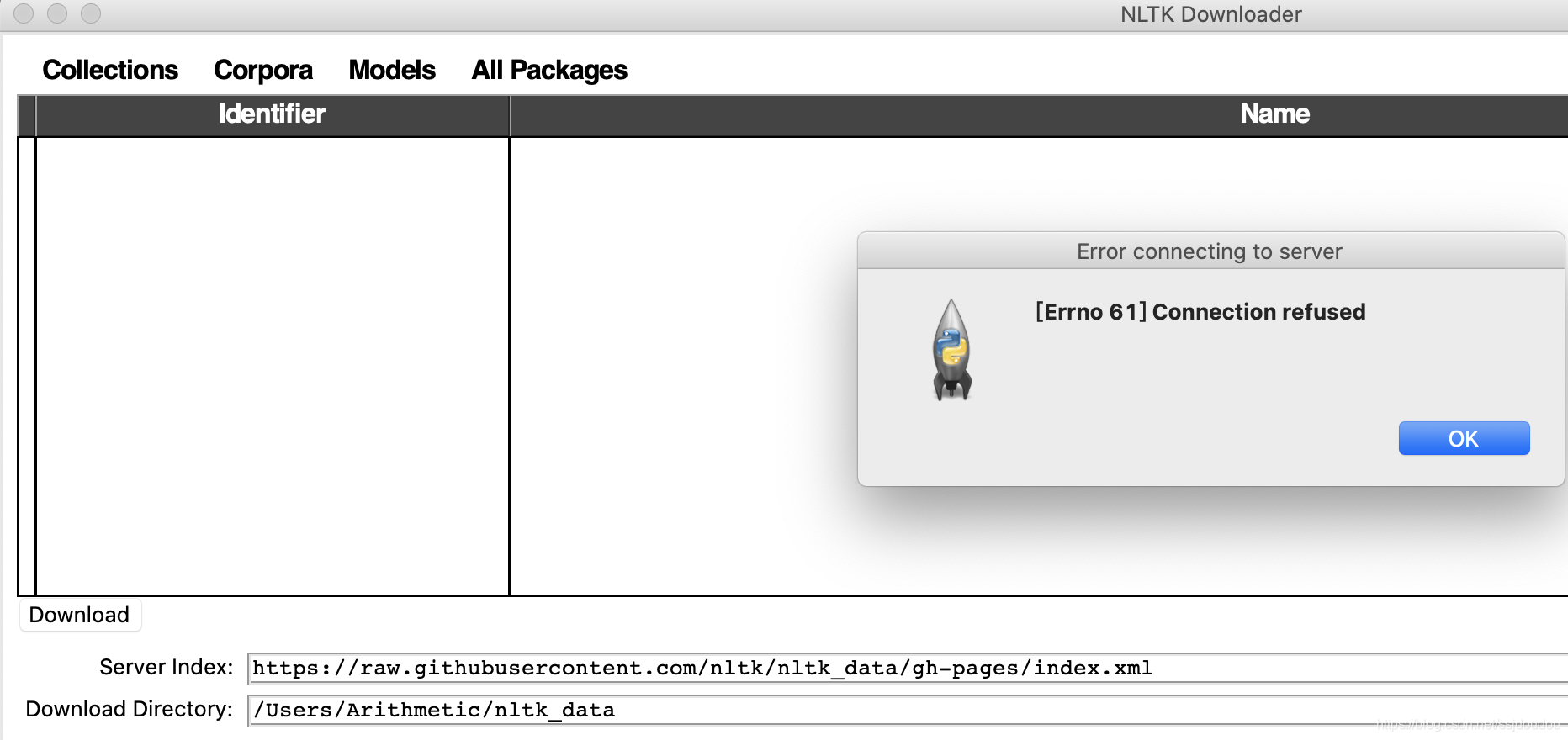 nltk下载错误的终极解决办法[Errno 61] Connection refused