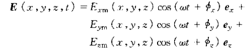 为电场的复数形式。(提出与时间相关的因子,取实部是欧拉公式展开保留cos部分)