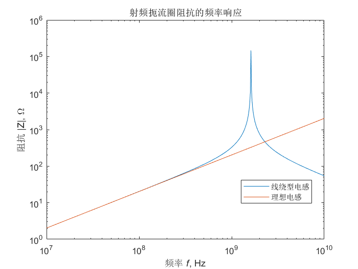 射频扼流圈的频率响应如图
