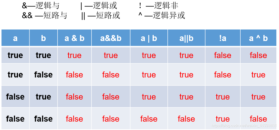 &和&&:当且仅当 a、b 都为 true 时,结果为 true ;