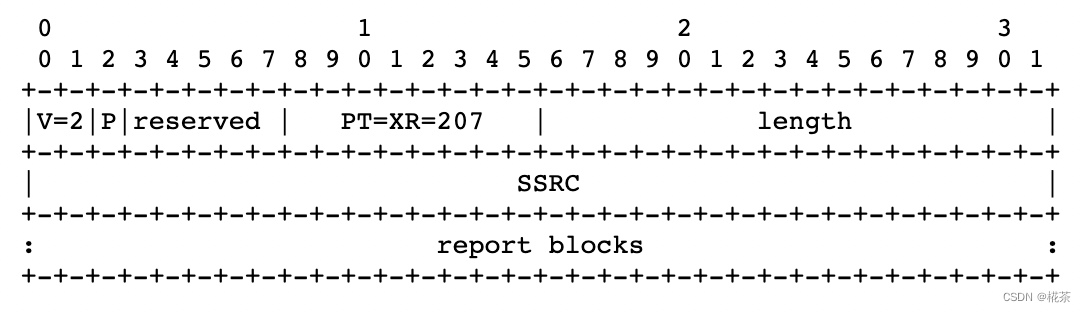 XR 报文 PT=207,主要用来提供更详细的时间,丢包等统计信息,其包体由 report blocks 组成。