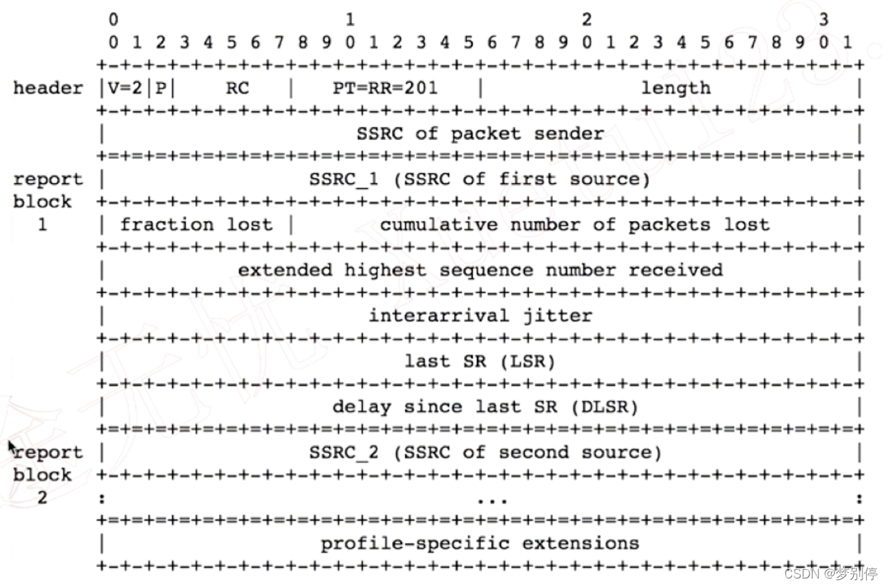 用户会发送所接收流的接收报告,发送端才能知道当前接收端的接收状态,接收报告通常包含多个 report block。