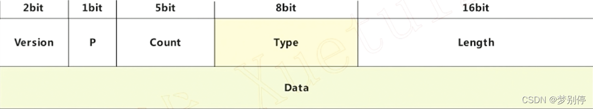 RTCP 报文格式如下所示,不同类型的报文有不同的 Data 结构。
