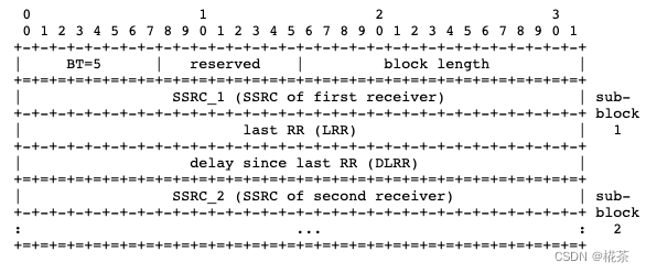 当接收端收到此报告块时,就可以测算 RTT = 当前时间 - RRT 时间 - DLRR 时间。