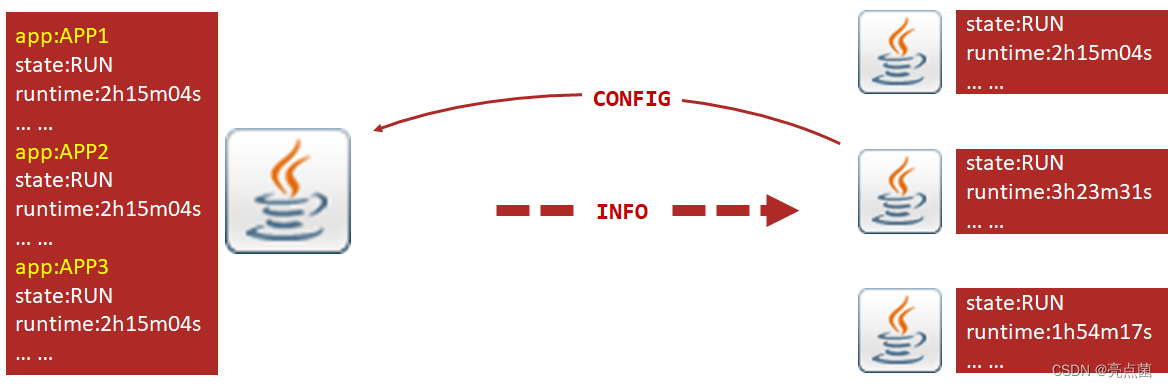 如果监控程序要监控服务时,主动获取对方的信息。那监控程序如何知道哪些程序被自己监控呢?不可能在监控程序中设置我监控谁,这样互联网上的所有程序岂不是都可以被监控到,这样的话信息安全将无法得到保障。合理的做法只能是在被监控程序启动时上报监控程序,告诉监控程序你可以监控我了。看来需要在被监控程序端做主动上报的操作,这就要求被监控程序中配置对应的监控程序是谁。