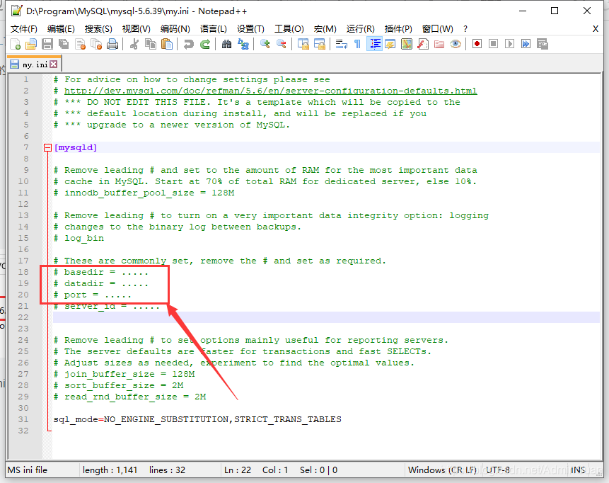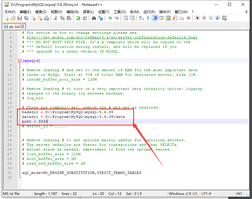 三、修改 my.ini 文件
