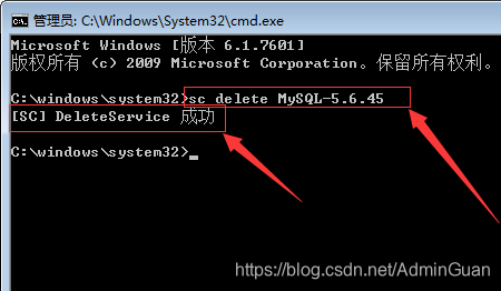 sc delete MySQL-5.6.45