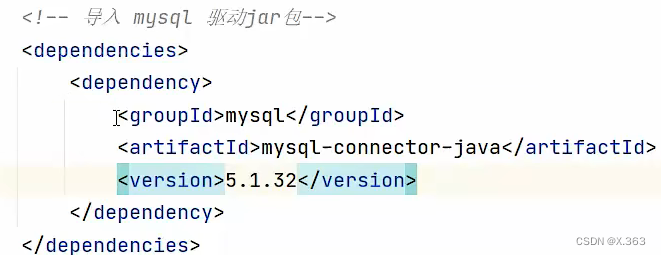 (2)导入坐标:在pom.xml中分别导入mybatis依赖、mysql驱动、junit测试和执行日志
