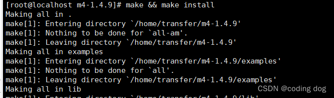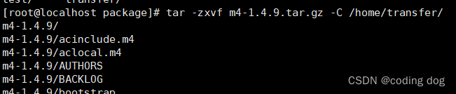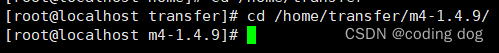 3.2:并使用tar -zxvf m4-1.4.9.tar.gz -C /home/transfer 并cd /home/transfer/m4-1.4.9