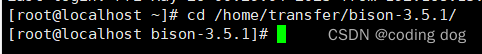 5.3:使用命令 tar -zxvf bison-3.5.1.tar.gz -C /home/transfer并使用命令cd /home/transfer/bison-3.5.1