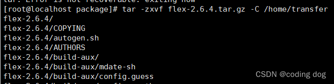 2.2:使用命令tar -zxvf flex-2.6.4.tar.gz -C /home/transfer