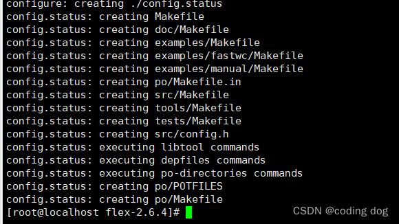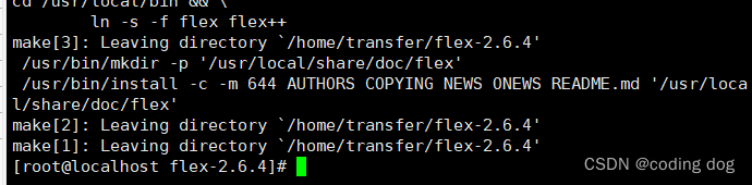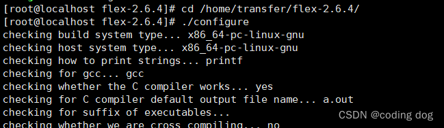 4.1:回去安装flex包,使用命令cd /home/transfer/flex-2.6.4并使用命令./configure