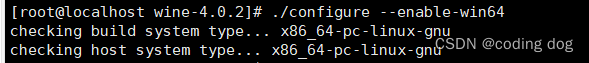 6.1:使用命令cd /home/transfer/wine-4.0.2,依旧使用命令./configure --enable-win64