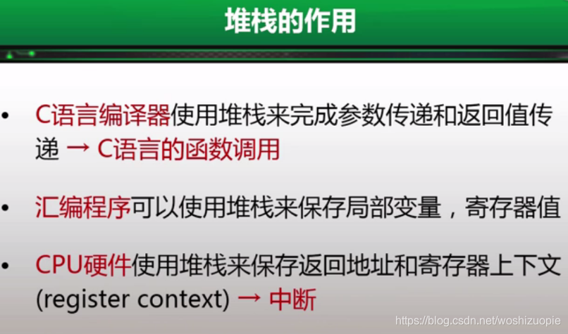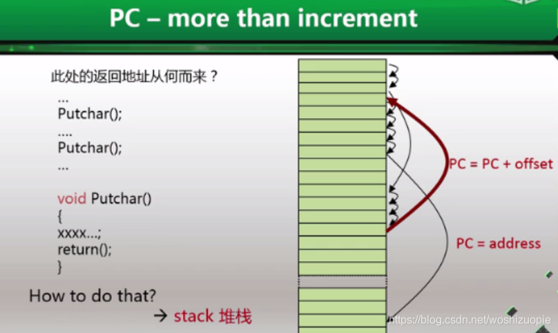 答:CPU会增加一个返回地址寄存器,但是如果函数出现嵌套调用,就会要求有多个返回地址寄存器。寄存器不可能无限制地加下去,所以出现了一个机制----堆栈。