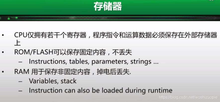 RAM相当于计算机上的内存,易失,可以作为堆栈,帮助我们在程序运行当中保存变量、保存函数地址等等。