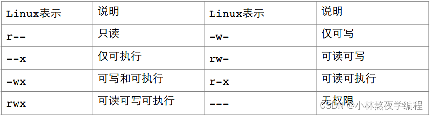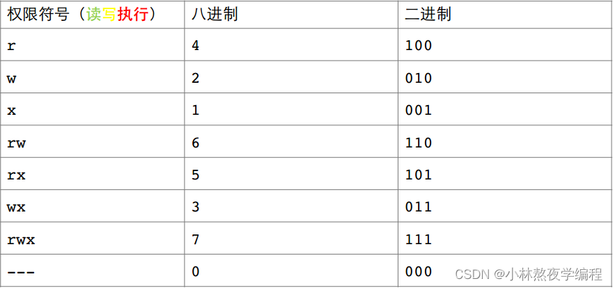 1、读(r / 4): Read对文件而言,具有读取文件内容的权限;对目录来说,具有浏览该目录信息的权限。