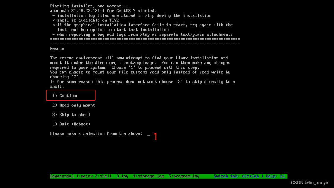 第四步:此时开机bios是找不到硬盘的操作系统,会先进入光驱的操作系统,进入急救模式,进入继续;