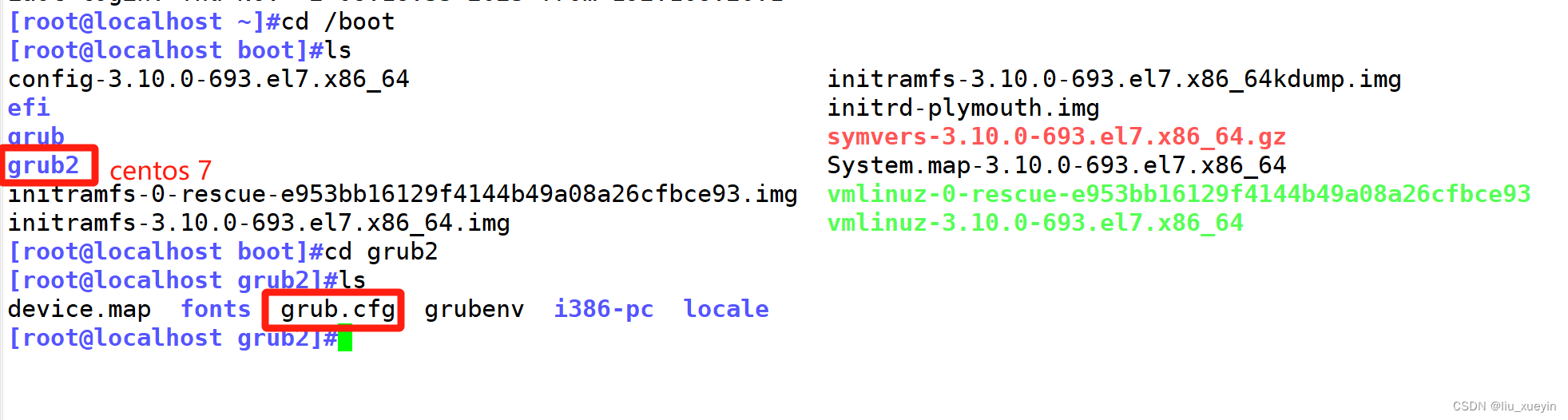 grub引导程序是通过读取配置文件,/boot/grub2/grub.cfg,配置文件中写明了内核和镜像文件的设置和路径(记住原理!!)