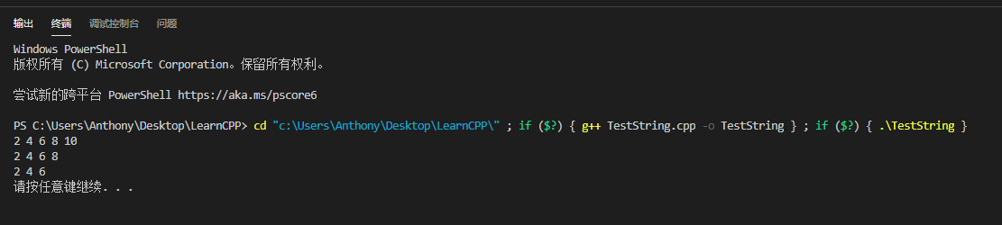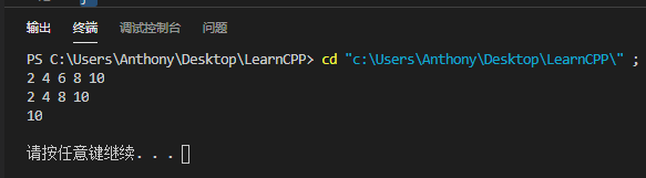 运行结果,注意下面一个空行打印,表示容器为空,已删除全部元素