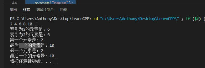 cout << "最后一个的元素是:" << vec[vec.size()-1] << endl;