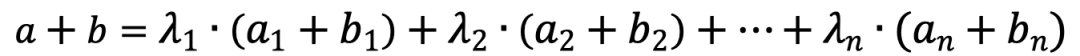 加法秘密分享机制为线性的意思为:存在一组常数𝜆1, 𝜆2,…,𝜆𝑛,使得:![]()