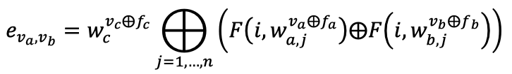 让𝑣𝑐是导线𝑤𝑐的真实输出值,𝑒𝑣𝑎,𝑣𝑏是导线𝑤𝑐的加密值。设定