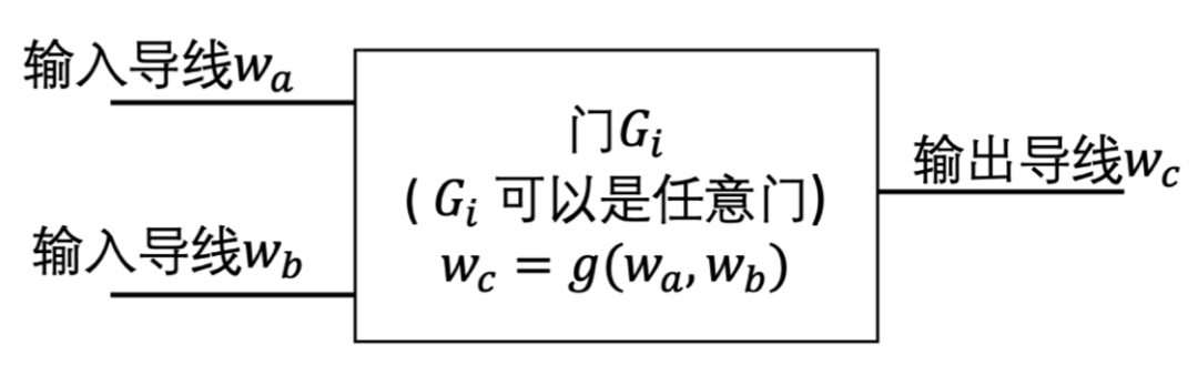 假设电路𝒞中门𝐺𝑖的输入导线为𝑤𝑎, 𝑤𝑏,输出导线为𝑤𝑐。门𝐺𝑖实现的函数为𝑤𝑐= 𝑔(𝑤𝑎,𝑤𝑏)。