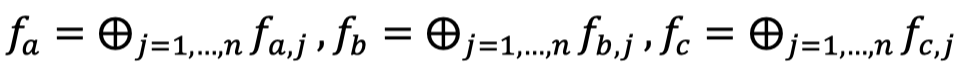 得到翻转比特𝑓𝑎,𝑓𝑏,𝑓𝑐,翻转比特用于掩盖参与者𝑃𝑖的输入,使得𝑃𝑖无法得知其对每条导线加密值的具体贡献。