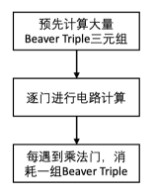 Beaver三元组:主要用于安全多方计算协议中的乘法计算。应用范围为加法和乘法均为线性的秘密分享机制。它的通信和计算都在协议开始之前进行,只需要在使用时准备好三元组。