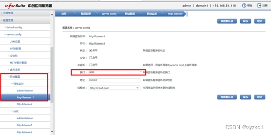浏览器访问http://ip:8060管理工具地址,进入管理工具,点击配置管理-server-config-网络配置-网络监听-http-listener-1,修改端口值,保存重启生效。