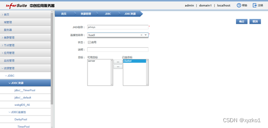 创建JNDI,连接池选刚才创建的,JNDI名称和应用读取JNDI的配置文件中对应。